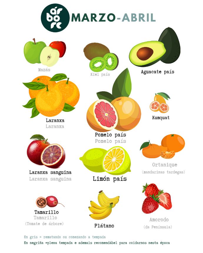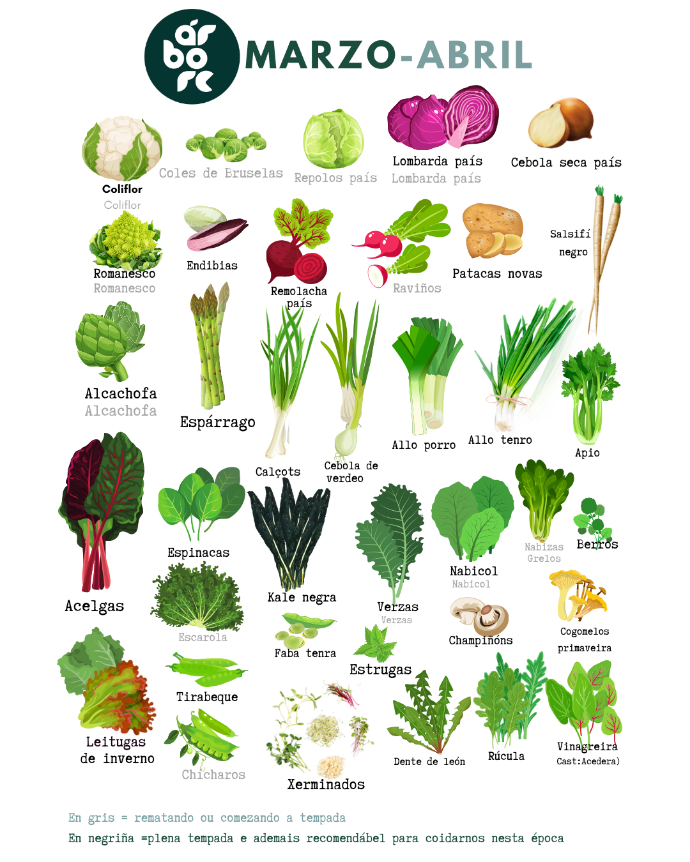 Un dos principios básicos do consumo consciente é botar man, sempre que sexa posible, de produtos de proximidade e de tempada. Con este obxectivo en mente, preparamos unhas fichas para que saibas que froitas, verduras e hortalizas se colleitan nesta época do ano.